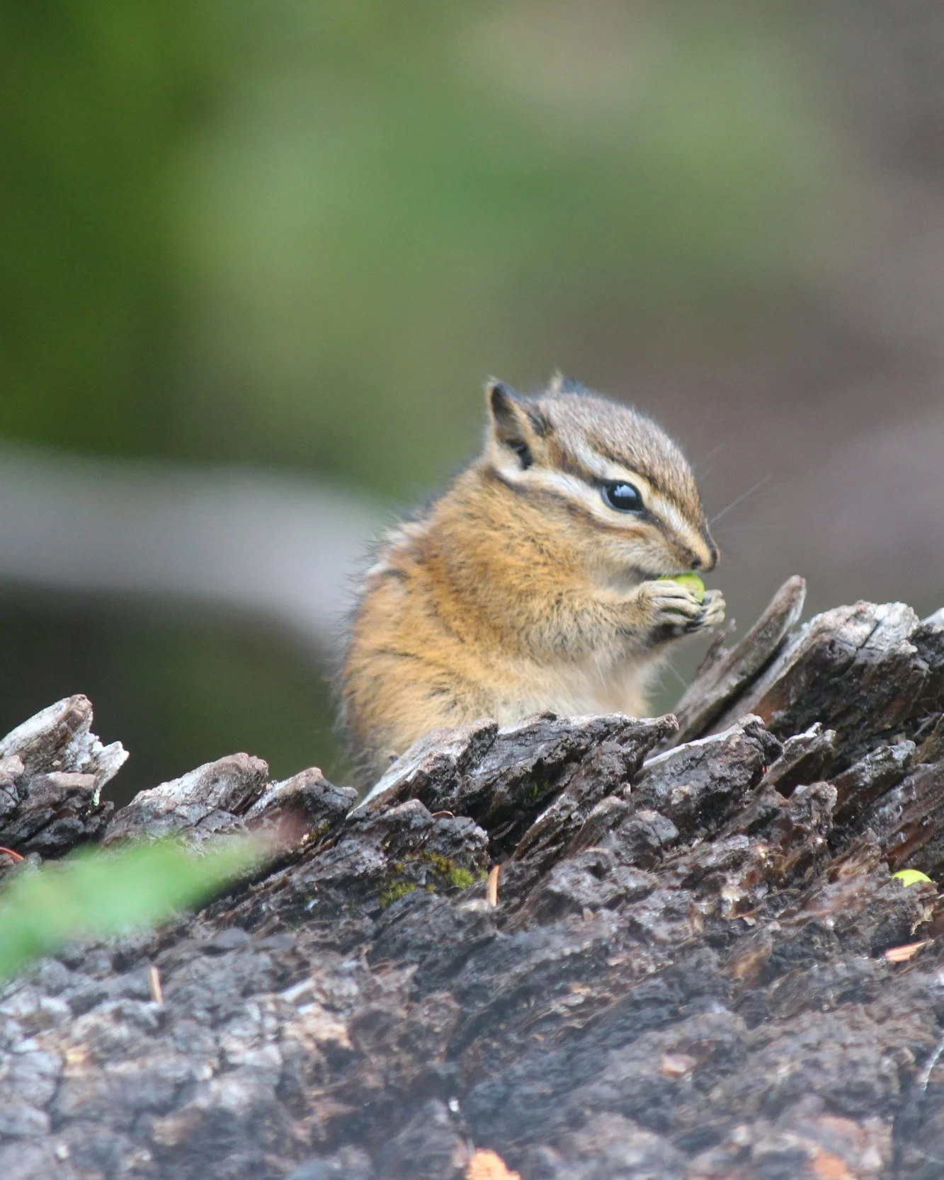 Cheeky chipmunk hiding among the habitat on Grouse Mountain and was lucky enough to get a quick shot of him when he came into view .